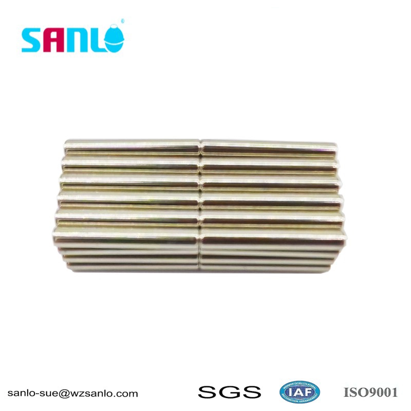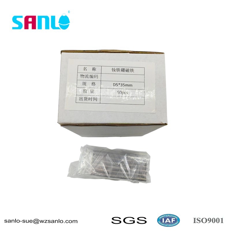 Los soportes de Sanlo personalizan el imán de neodimio de alta calidad para el interruptor de bola de flotación --- 5*35 dependiendo de la solicitud del cliente. Funciona en el interruptor de nivel del sistema de agua. Con una temperatura más alta, mayor presión. Su forma es cilíndrica, magnetizada saturada y superficie sin pozos, el color es blanco plateado. Más brillante que el color natural del cobalto de Samario.